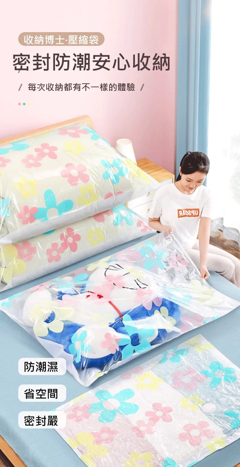 25分鐘前掛式真空壓縮袋推薦,輕鬆節省衣櫃空間 - 【買3送3】尺寸任選★贈電動抽氣機★ NT$999